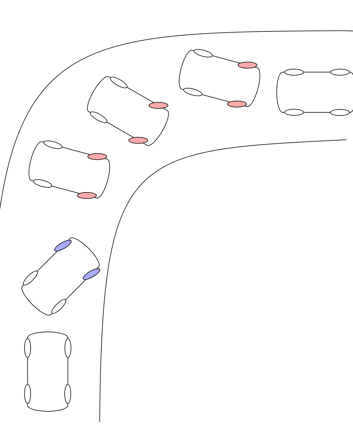 類似の操作にカウンターステアリング/Counter steering があり これは サイクリングやモーター サイクリング~などで車両運転者が目的の方向に瞬間的に反対方向にステアリング操作する 特定の方向へのターンを開始するために行う行為