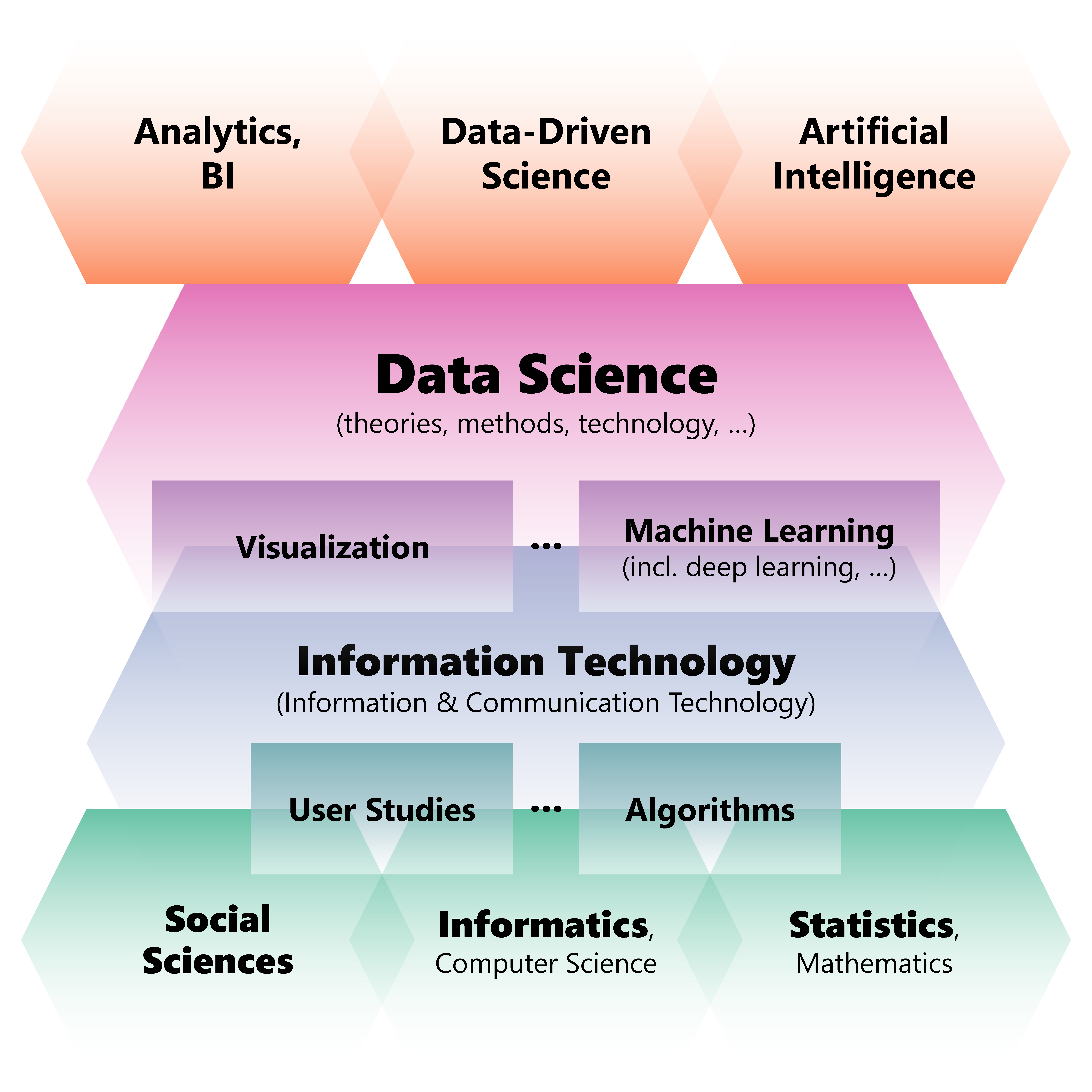 As such, it incorporates skills from computer science, statistics, information science, mathematics, data visualization, information visualization, data sonification, data integration, graphic design, complex systems, communication and business.