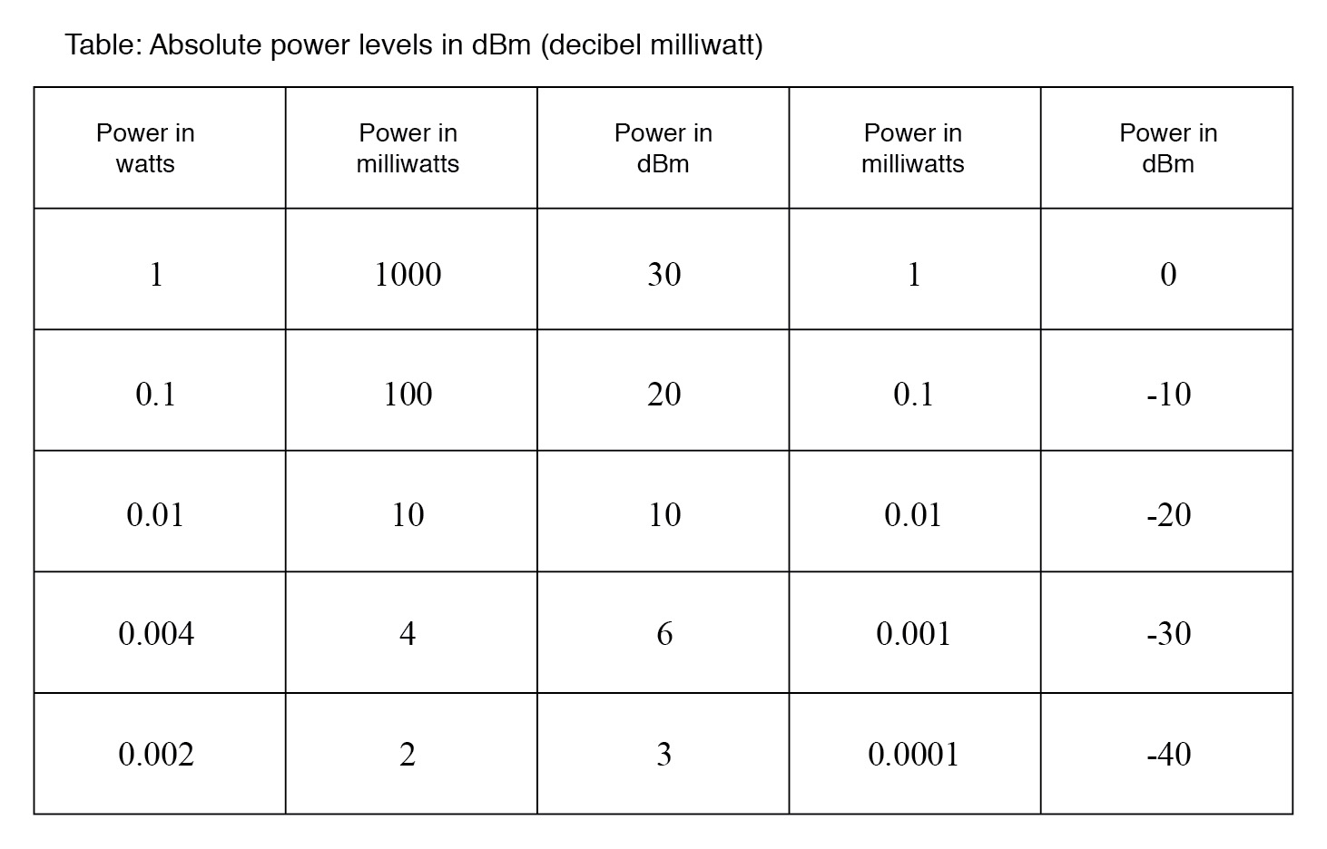 1 W = 30 dBm