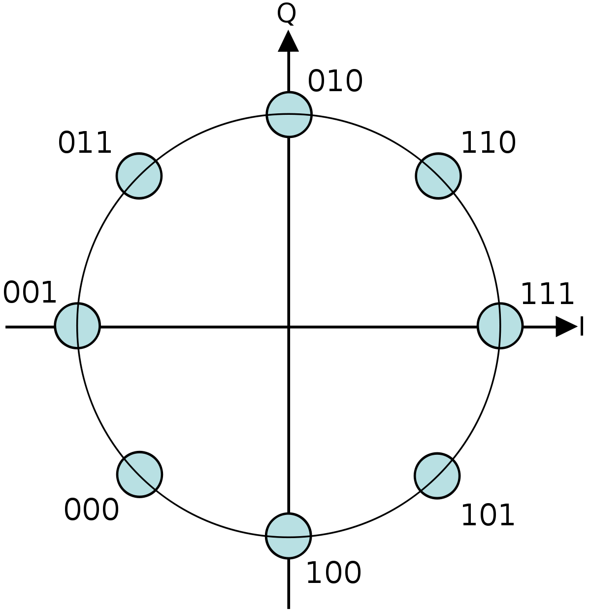 単一搬送波の変調方式/位相偏移変調/8PSK/8 Phase Shift Keying