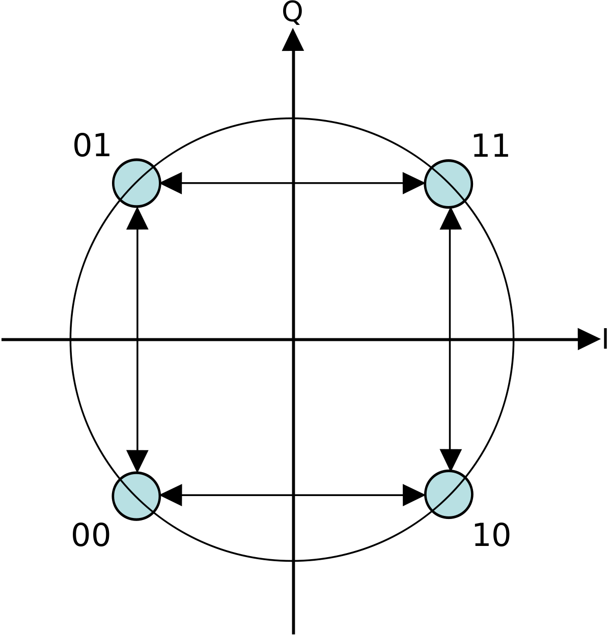 QPSK Gray Coded WMC 位相偏移変調/PSK/phase shift keying は 一定周波数の搬送波の位相を変化させることで変調するものである
