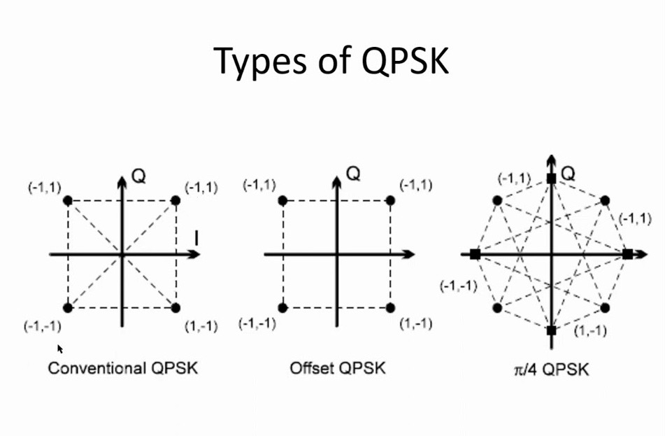 振幅変動は後述のπ/4 shift QPSKよりも小さいため優れているが 受信にリミッタが使えず回路が簡単な遅延検波が使えないことから 日本ではπ/4 shift QPSKがもてはやされた