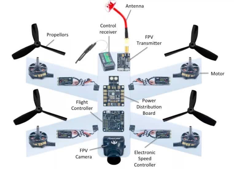 各センサからの情報を源にコンピュータが機体の姿勢を監視/安定化させつつ 操縦に応じて機体の傾きや進行方向を制御するために用いられる