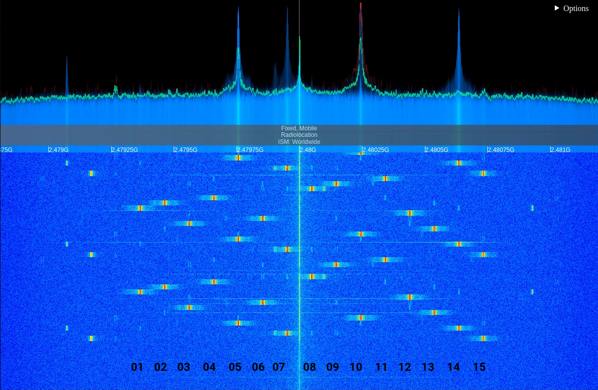 ホップする周波数をホッピング・チャンネルと呼び これが多いほど 妨害/干渉/傍受 に強くなる