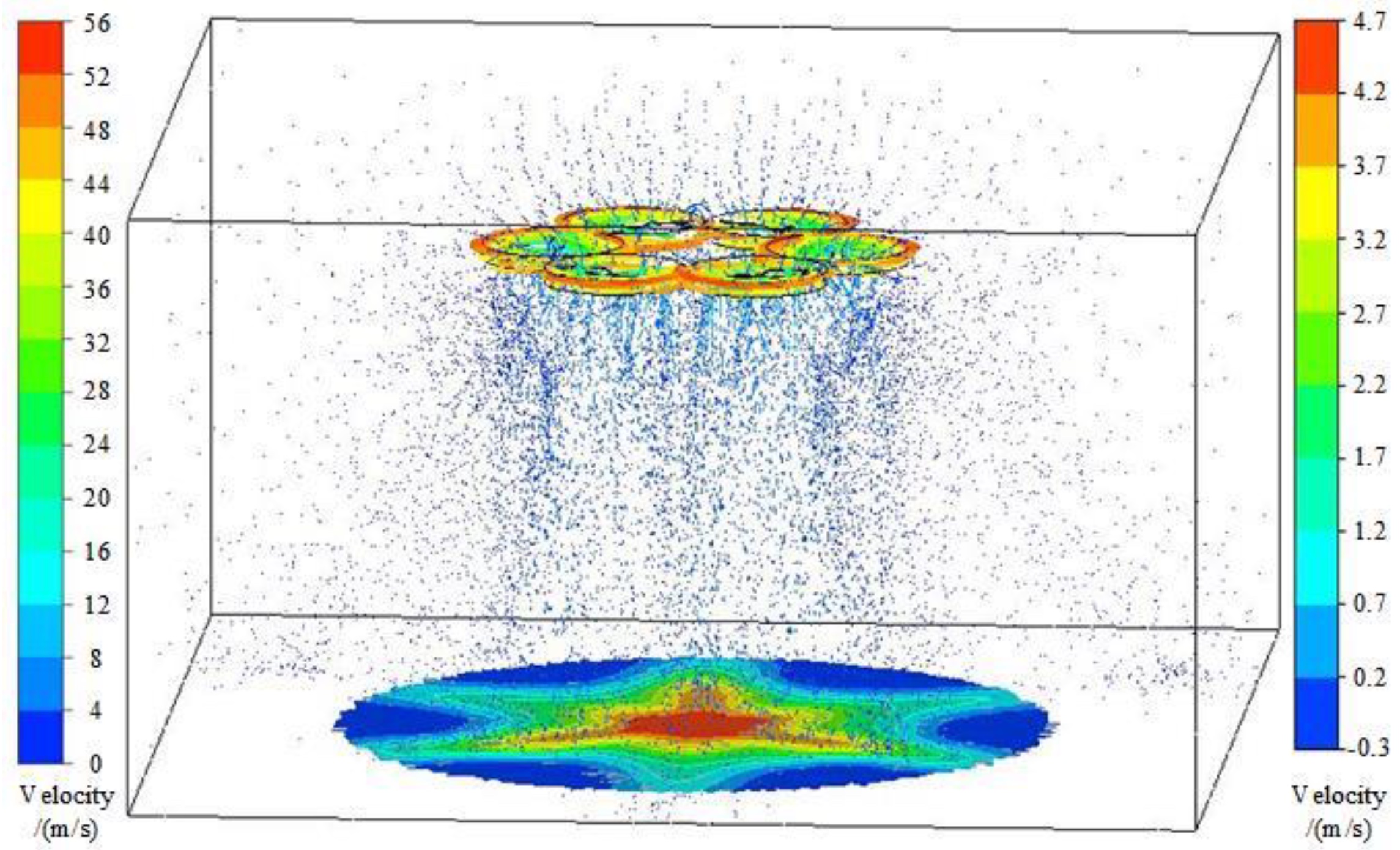 ダウンウォッシュは翼後縁が横切った矩形状領域に生じる