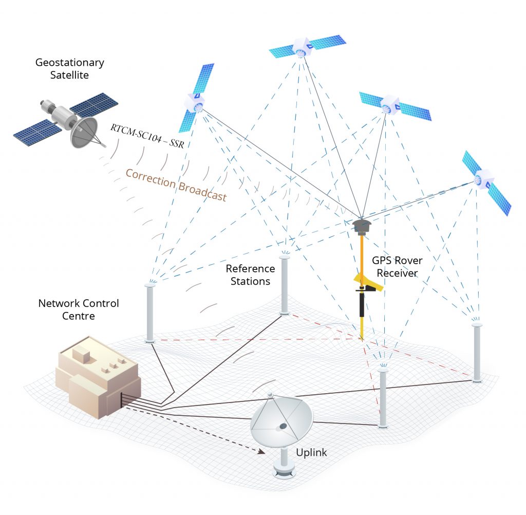 RTK follows the same general concept, but uses the satellite signal's carrier wave as its signal, ignoring the information contained within. RTK uses a fixed base station and a rover to reduce the rover's position error. The base station transmits correction data to the rover.