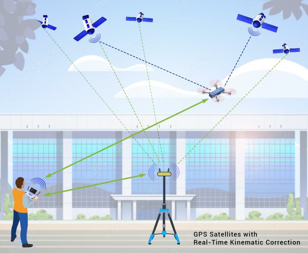 リアルタイムキネマティック/RTK は 既存の衛星測位システム/GNSS から得られた位置情報に加え 地上に設けた独自の基準局の補正位置情報を加味し 位置情報の精度を上げる技術