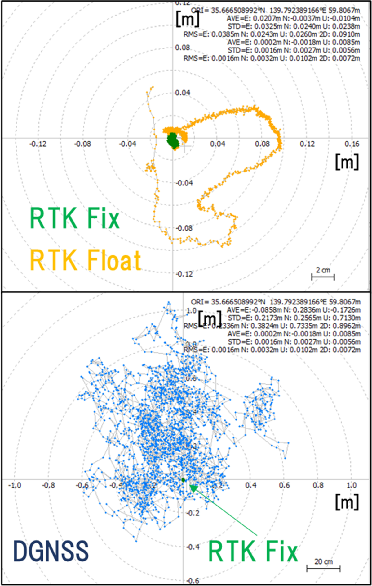 このため 相対位置はミリメートル単位まで計算できるが 絶対位置の精度は 基地局の計算位置と同じ精度にとどまる